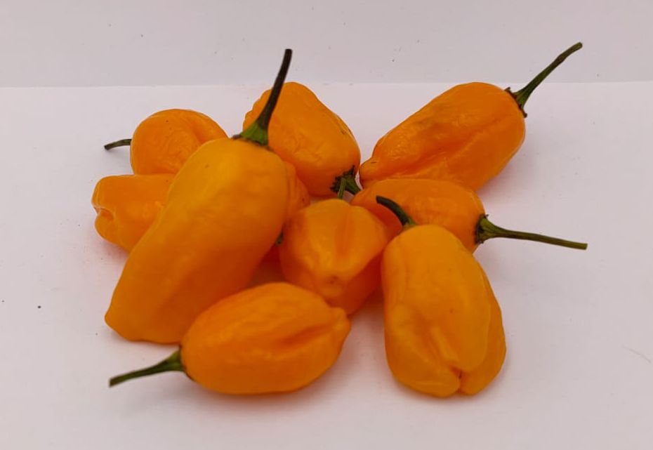 The orange, elongated fruits, which are slightly folded and have thick, juicy walls, ripen to a warm yellow-gold. With a spiciness of 7 on the Scoville scale, they offer intense spiciness and a fruity-sweet taste, which makes them ideal for preparing sauces, salsas or for drying.