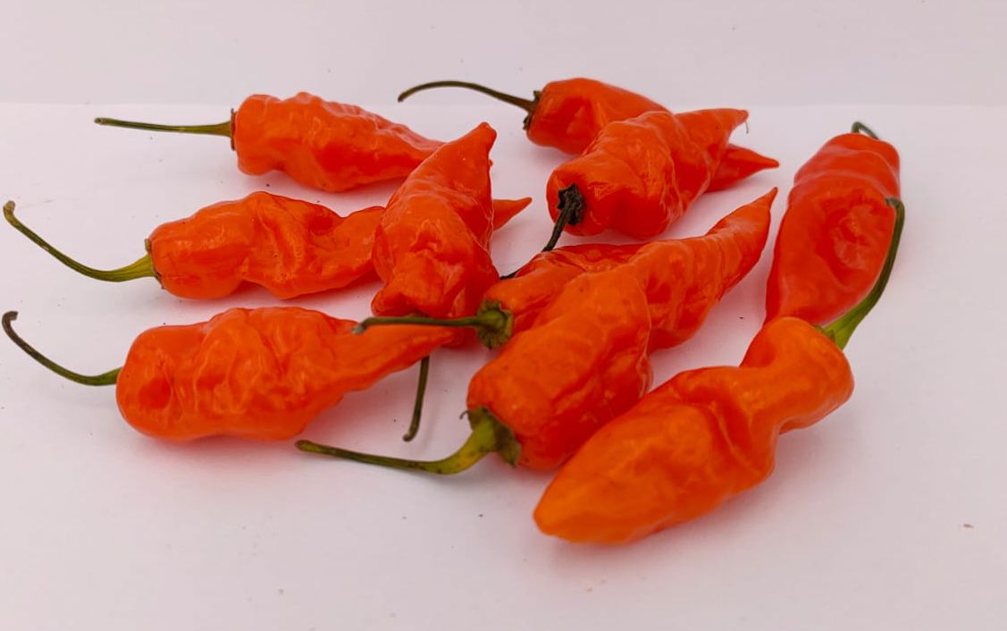 El Carrot Ghost Chili es un auténtico manjar para los amantes de las especias. Con su impresionante sabor picante de unas 80.000 unidades Scoville y un nivel de picante de 8, ofrece una experiencia gustativa explosiva. Su aroma único, afrutado y ahumado los convierte en un ingrediente muy solicitado para preparar salsas picantes, adobos y mezclas de especias. Los frutos alargados, parecidos a las zanahorias, que maduran de un verde vibrante a un naranja intenso, no sólo destacan en términos de sabor sino también visualmente.