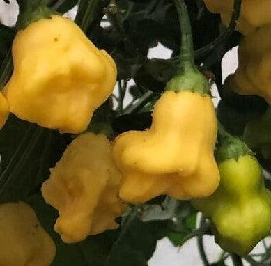 Die Fatalii Gourmet Aji Fantasy ist eine bemerkenswerte Chili-Sorte, die in Finnland von Jukka Fatalii über einen Zeitraum von mehr als fünf Jahren entwickelt wurde. Diese Capsicum baccatum-Varietät zeichnet sich durch ihre mittelgroßen, glockenförmigen Früchte aus, die von Grün zu einem hellen Gelb reifen. Die Pflanzen erreichen eine Höhe von 80 bis 120 cm und wachsen buschig, was sie zu einer attraktiven Ergänzung für jeden Garten macht.